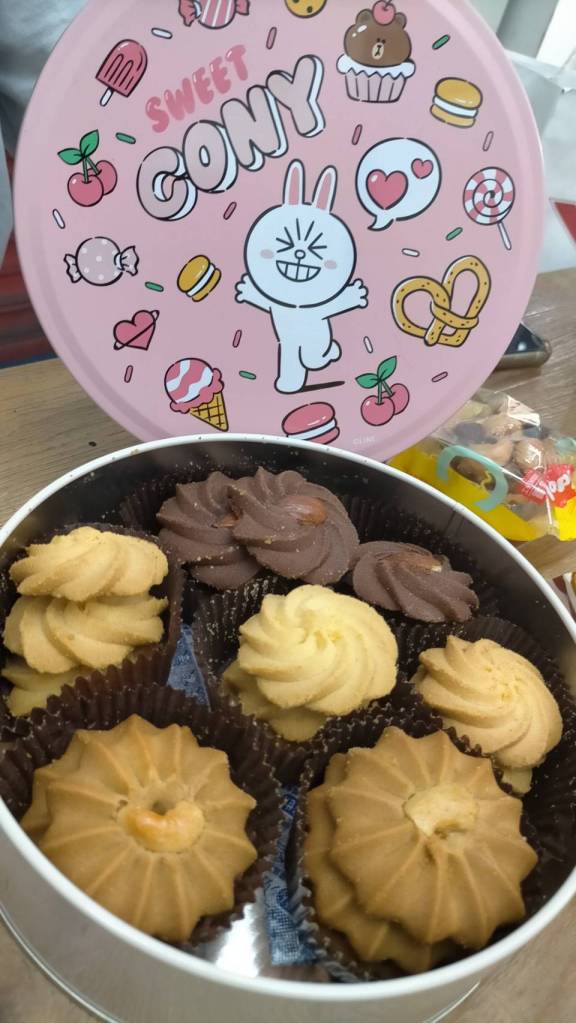 另外我們這四天連假還有有跑高雄摩天輪地標百貨-夢時代。很幸運的是,大年初二去剛好趕上line朋友家族系列特展,大家可以跟熊大和他們的好朋友們在1F廣場區拍照留念,另外還有許多系列商品可以選購購買。我買了一個一之軒與line合作的餅乾和蜂蜜蛋糕組,因為單一盒沒有特價,2個打75折,非常的划算,送禮自用兩相宜。